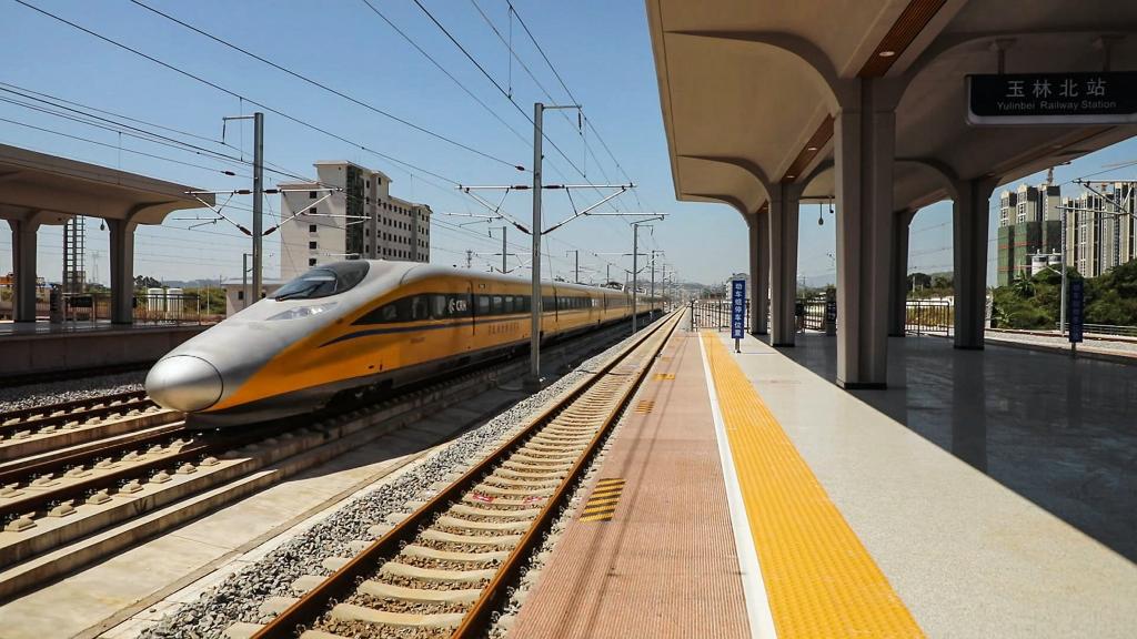 南玉高铁西起南宁市南宁东站,东止玉林市玉林北站,正线全长193.31公里,是由广西全资建设的设计时速350公里高速铁路。建成通车后,南宁至玉林的行车时间将由1小时44分缩短至50分钟左右,对推动广西北部湾经济区和粤港澳大湾区“两湾联动”具有重要意义。