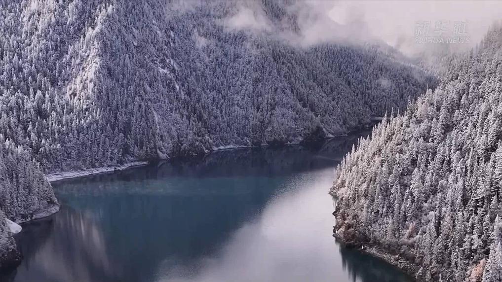 近期,雪花飘临四川九寨沟,轻柔的白雪将山峦覆盖,仿佛披上了白色的披风。在蓝天碧水间,九寨沟化身为梦幻仙境般的童话世界。