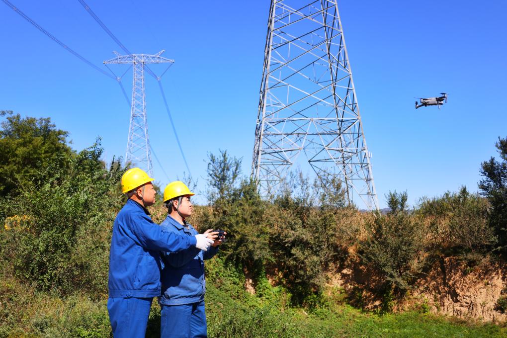 国网山西超高压输电公司运维人员正在进行无人机巡检。新华社发 杜衡 摄