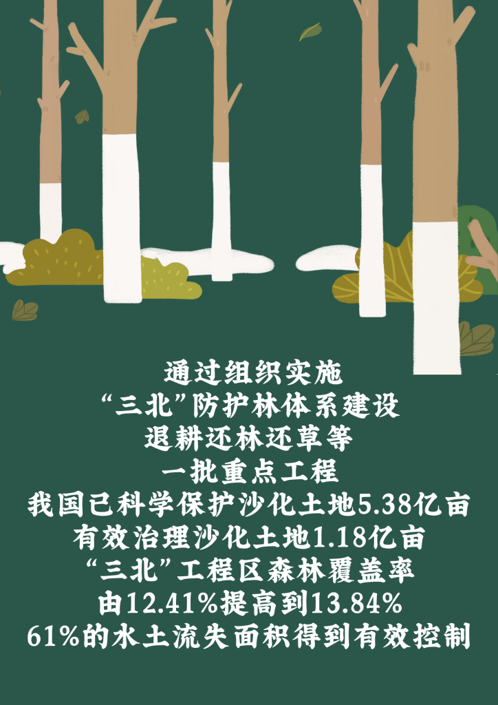 中国自1994年签署《联合国防治荒漠化公约》以来,认真履行《公约》责任义务,制定国家履约行动方案,积极参与全球荒漠化治理。《公约》秘书处两次授予我国“防治荒漠化杰出贡献奖”,称赞“世界荒漠化防治看中国”。