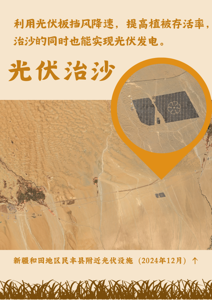 今年以来,新疆把补齐285公里“缺口”作为塔克拉玛干沙漠边缘阻击战的重点,因地制宜、分类施策,综合采用工程固沙、生物治沙、光伏治沙等科学治沙技术,在固沙阻沙的同时,大力发展具有地方特色的沙产业,助力惠民富民。