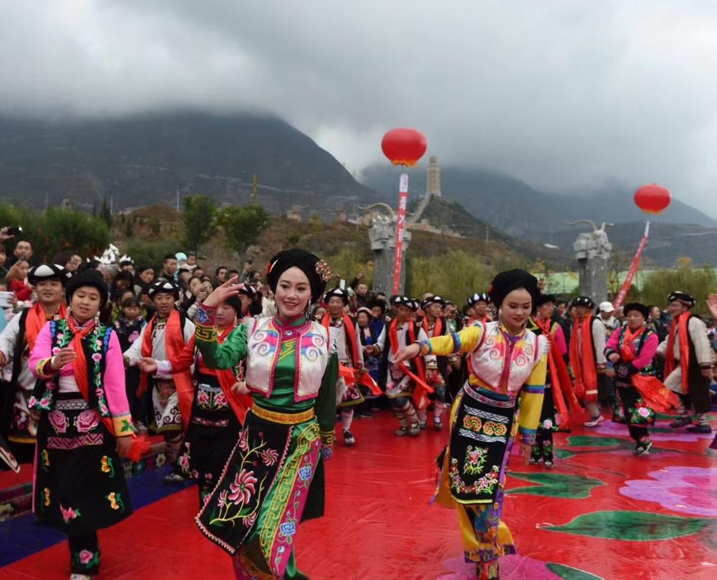 2017年11月18日,羌族妇女载歌载舞迎接羌族新年的到来。新华社记者陈地 摄