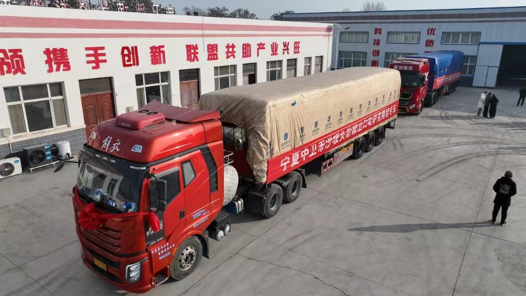 10时50分,随着一声“发车”令下,首批满载66吨彩椒的货车缓缓启动,驶出中心。这些彩椒将搭乘专车通过霍尔果斯口岸出口哈萨克斯坦,标志着宁夏反季新鲜蔬菜首次出口该国,沙坡头彩椒正式走向国际市场。