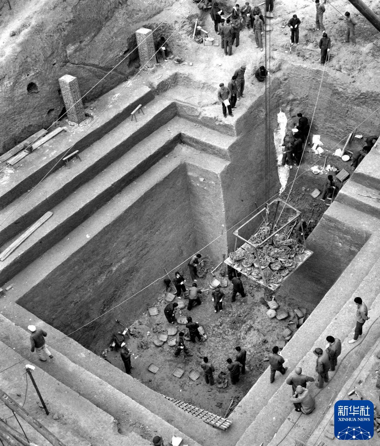 这是1974年8月拍摄的长沙马王堆三号汉墓墓坑发掘施工现场。新华社发