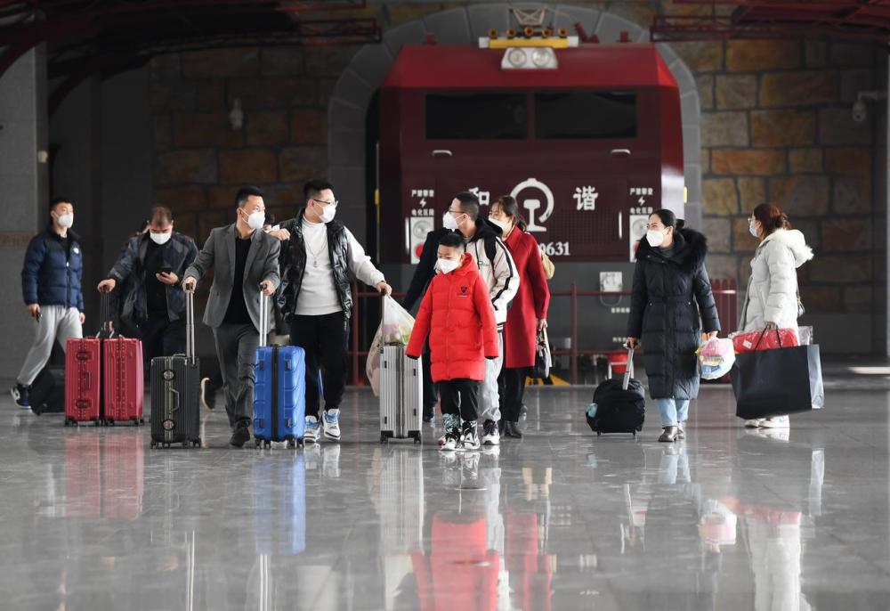 2023年1月7日,旅客在西安站候车大厅准备乘车。新华社记者 李一博 摄