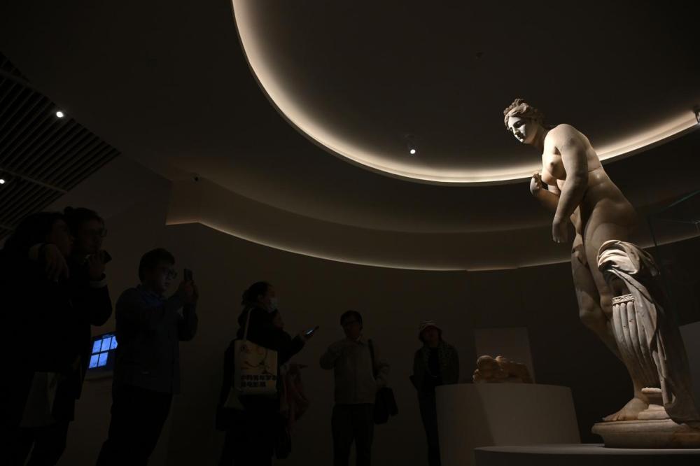 11月5日,观众观看“美的多元——古希腊的艺术与生活”展览展出的卡皮托利尼式阿佛洛狄忒雕像。新华社记者 金良快 摄
