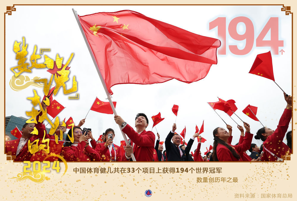 国家体育总局竞技体育司12月26日发布《2024年我国运动员取得成绩报告》。2024年中国体育健儿共在33个项目上获得194个世界冠军,数量创历年之最。