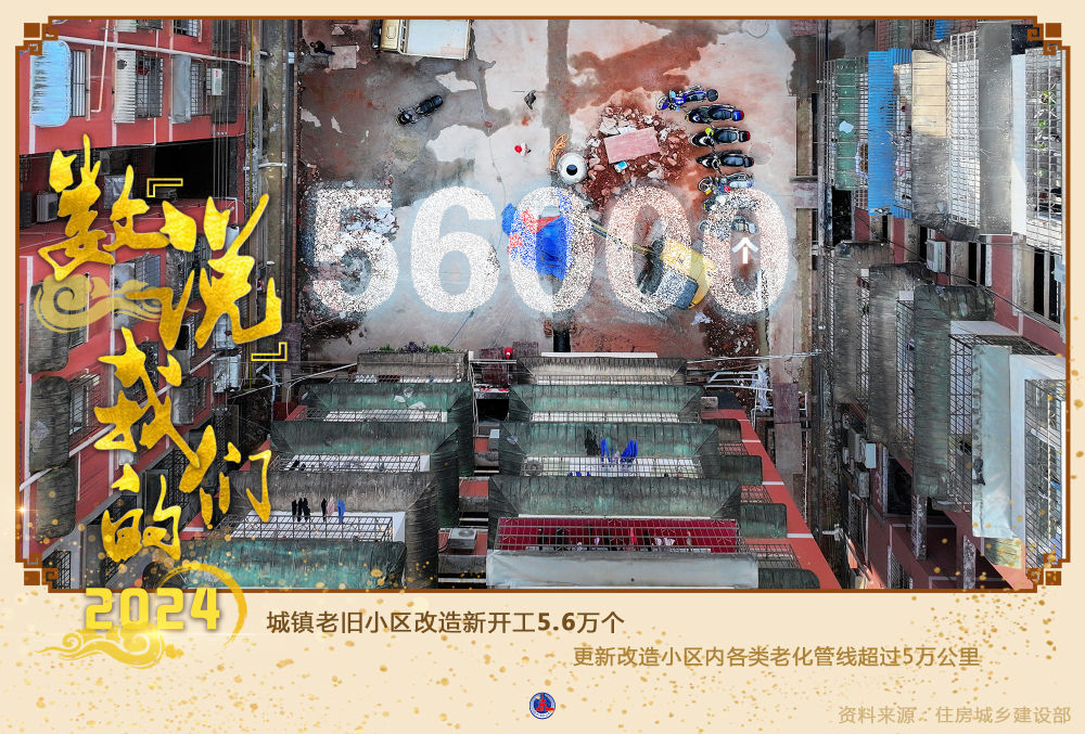 住房城乡建设部提供的数据显示,2024年,城镇老旧小区改造新开工5.6万个,更新改造小区内各类老化管线超过5万公里。