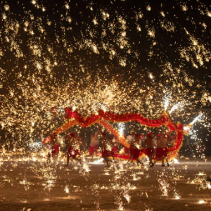 1月29日,在哈尔滨伏尔加庄园,铜梁火龙队的队员表演铜梁龙舞。(新华社记者 张涛 摄)