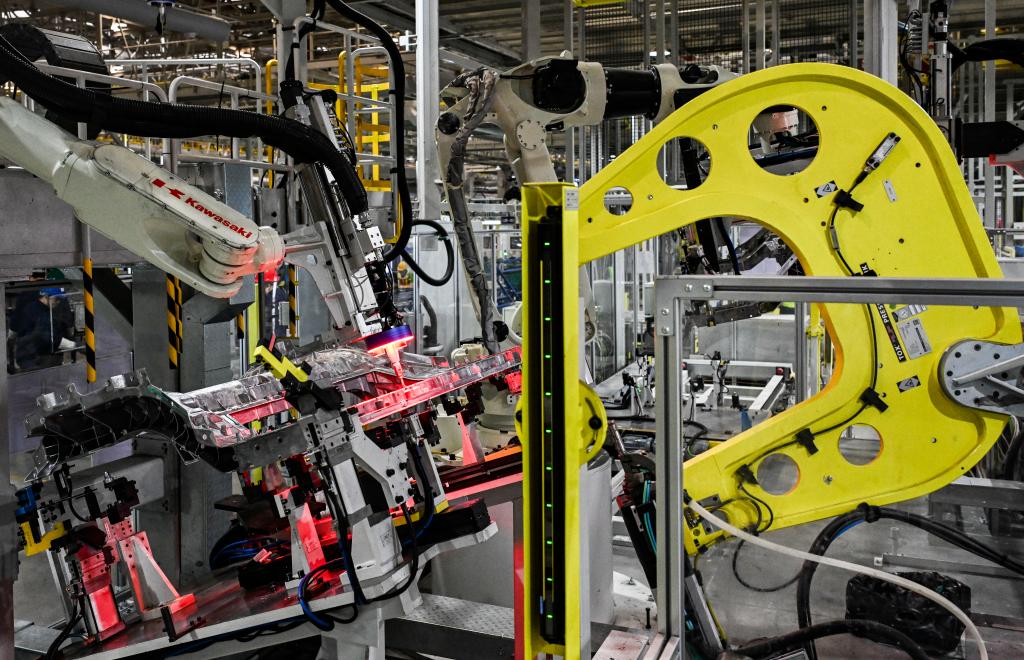 1月9日,在位于重庆市渝北区的长安汽车数智工厂焊接车间拍摄的自动化生产作业现场。(新华社记者 王全超 摄)
