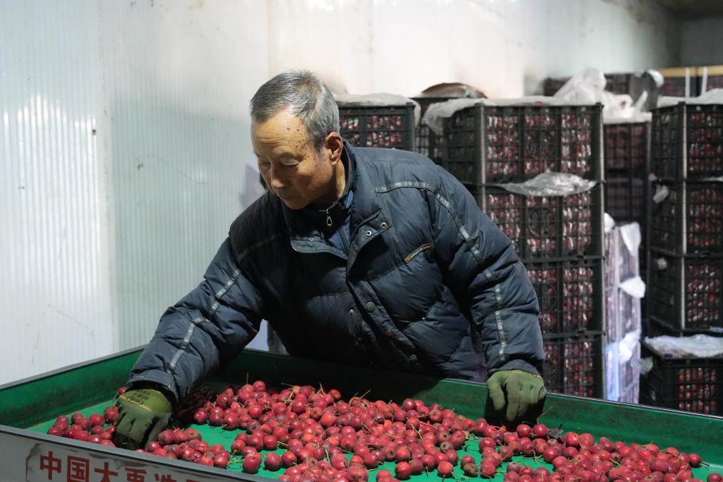冰糖葫芦加工工厂里的工人正在筛选山楂。新华社记者 龚璟璐 摄