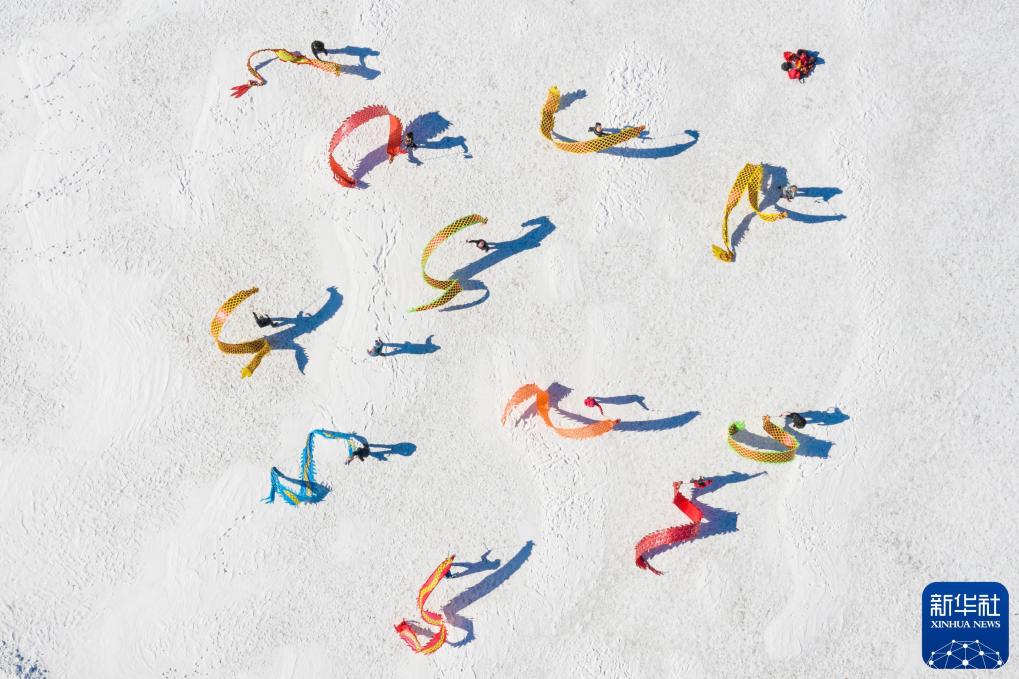 2021年3月6日,健身爱好者在黑龙江省鹤岗市新一体育公园内舞彩带龙。新华社记者 谢剑飞 摄