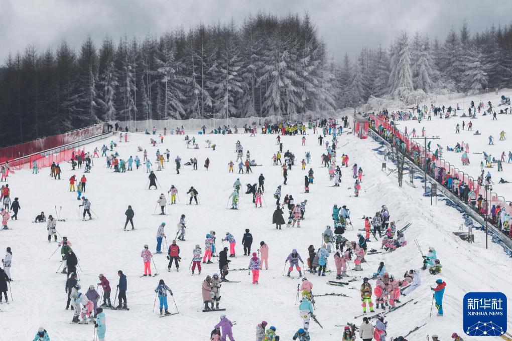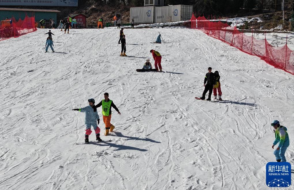2024年1月6日,游客在安徽省潜山市水吼镇天柱山滑雪场体验滑雪。新华社记者 杜宇 摄