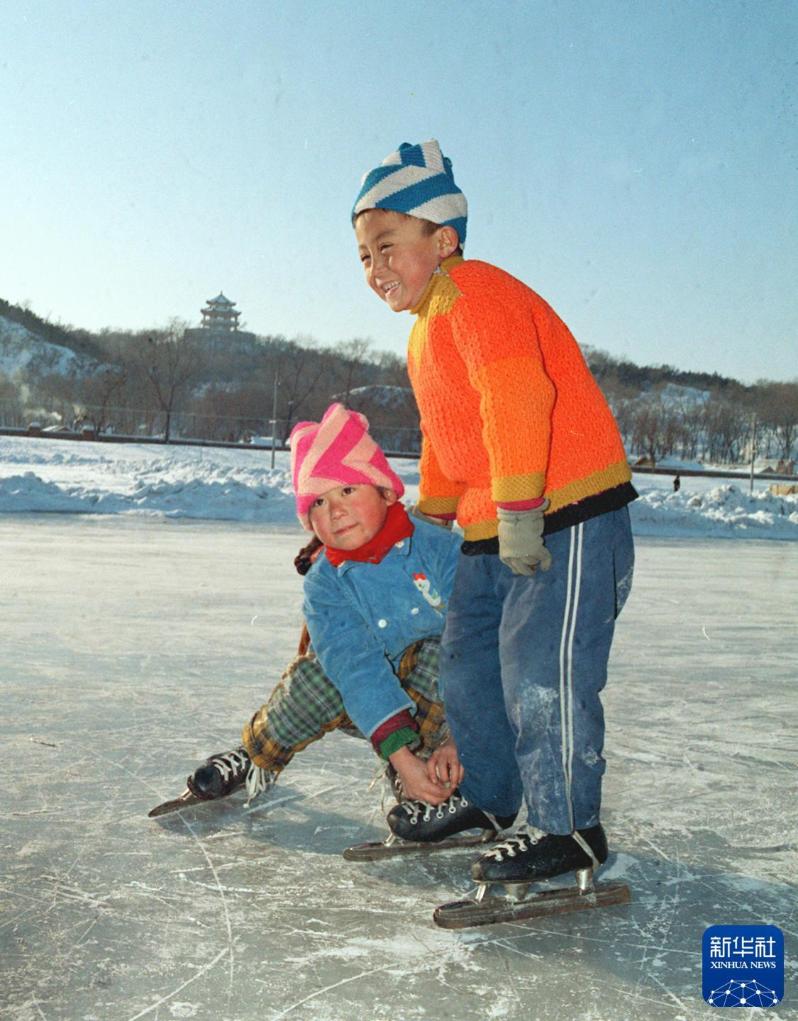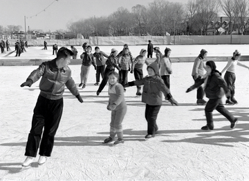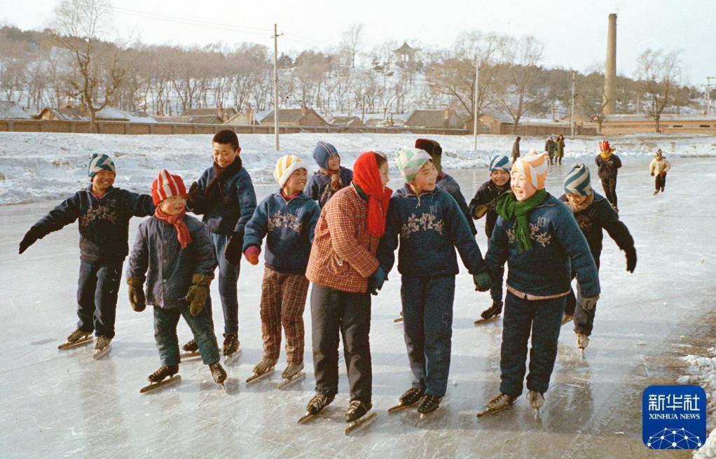 1979年,在吉林省吉林市,孩子们成群结队来到冰场练习滑冰。新华社记者 刘恩泰 摄