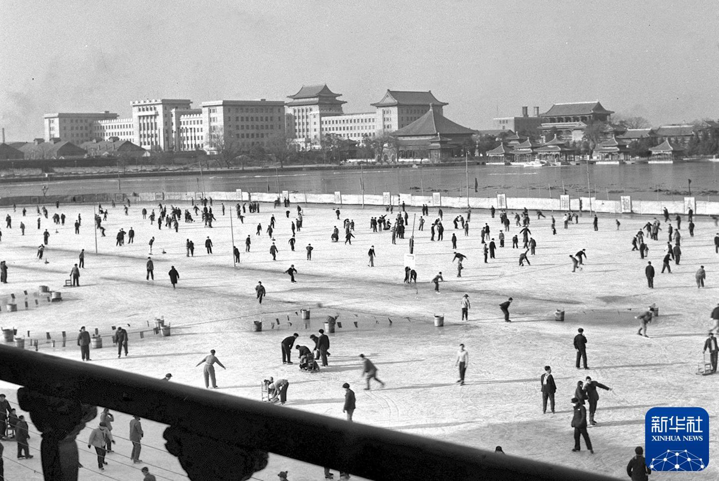 1959年拍摄的北海公园滑冰场。新华社记者 黄景达 摄