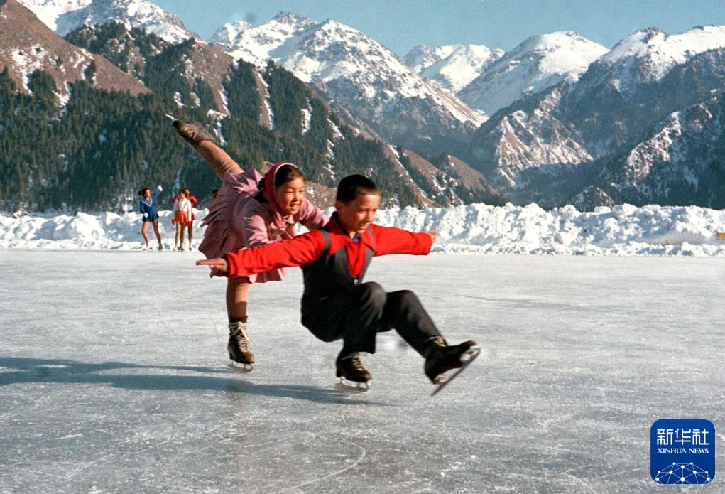 1978年,新疆的少年儿童在练习花样滑冰。新华社记者 武纯展 摄