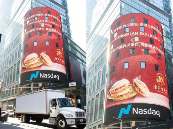 北京时间2024年9月17日,潼关肉夹馍海报亮相美国纽约时报广场。新华社发