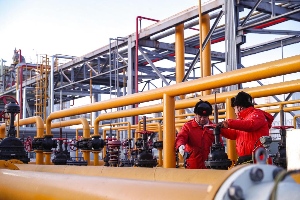 2025年1月3日,大庆油田天然气分公司职工在对管线关键部位进行巡检。新华社发(马克摄)