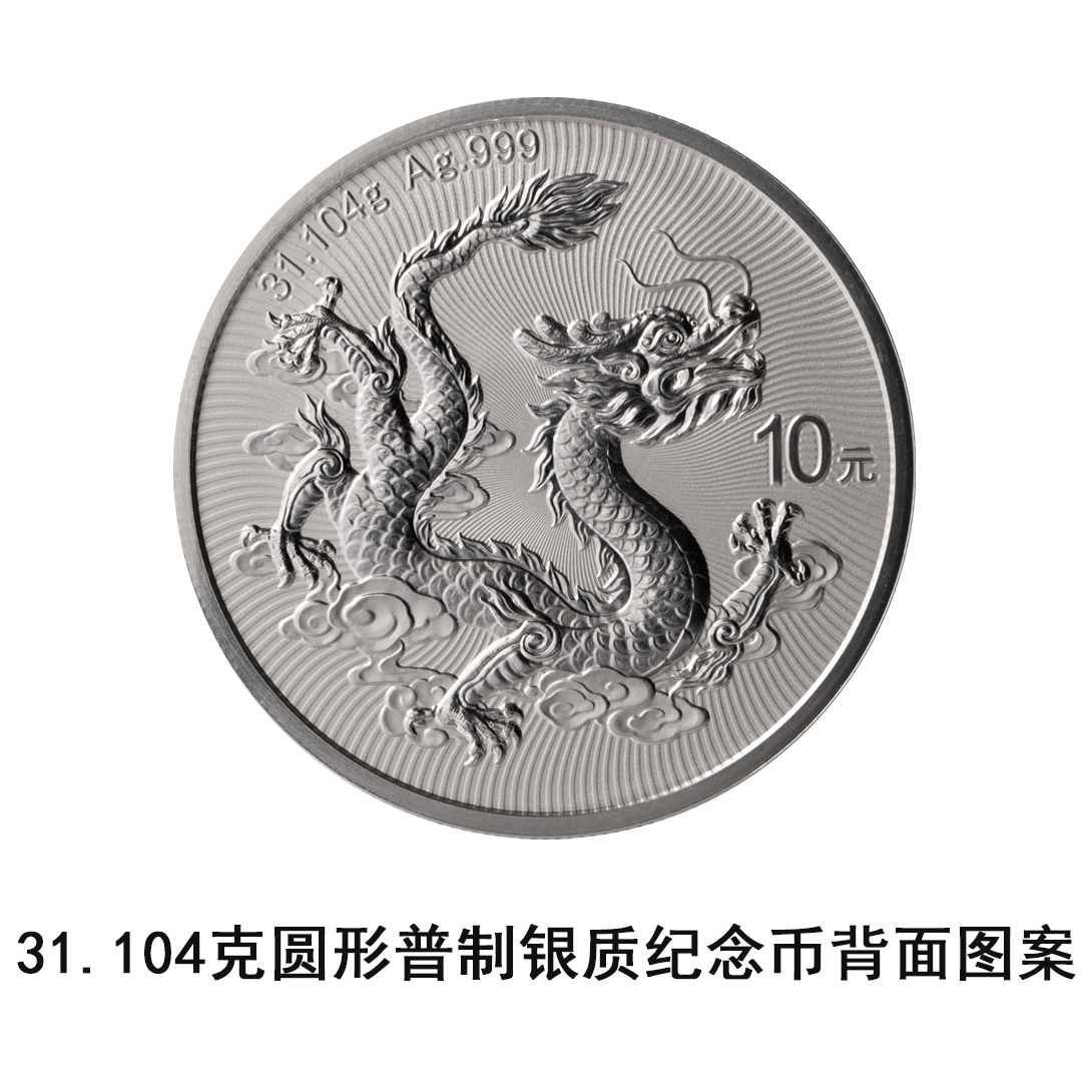 该枚银质纪念币背面图案为中国龙形象,辅以祥云图案组合设计。