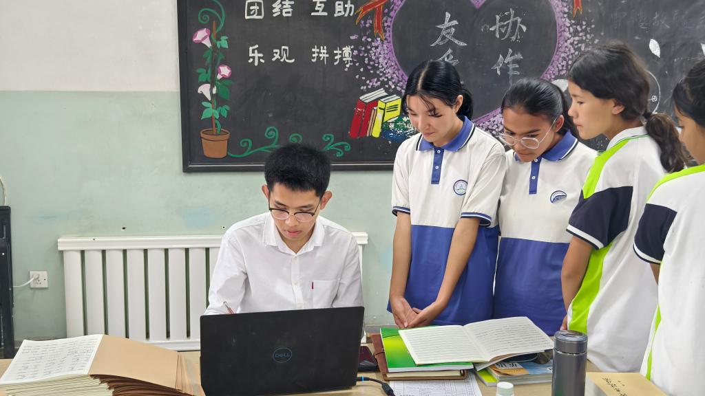 同样来自山东的小伙儿盖彦吉对支教事业抱有激情。2024年夏天,从中国农业大学本科毕业后,他参加了学校的西部计划研究生支教团,来到莎车县第三中学任教。在教学工作中,盖彦吉发现,青年教师的天然亲和力,能更好激发学生的求知欲。