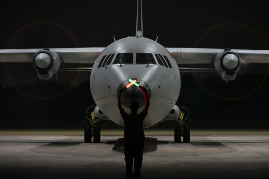 时间不知不觉流逝,一批批战机在海天之间接力反潜。暮色降临,海天界限渐渐变得模糊,飞行员紧盯仪表屏幕,操纵战机低空掠海飞行。深夜,随着最后一架战机平稳降落,训练圆满结束。