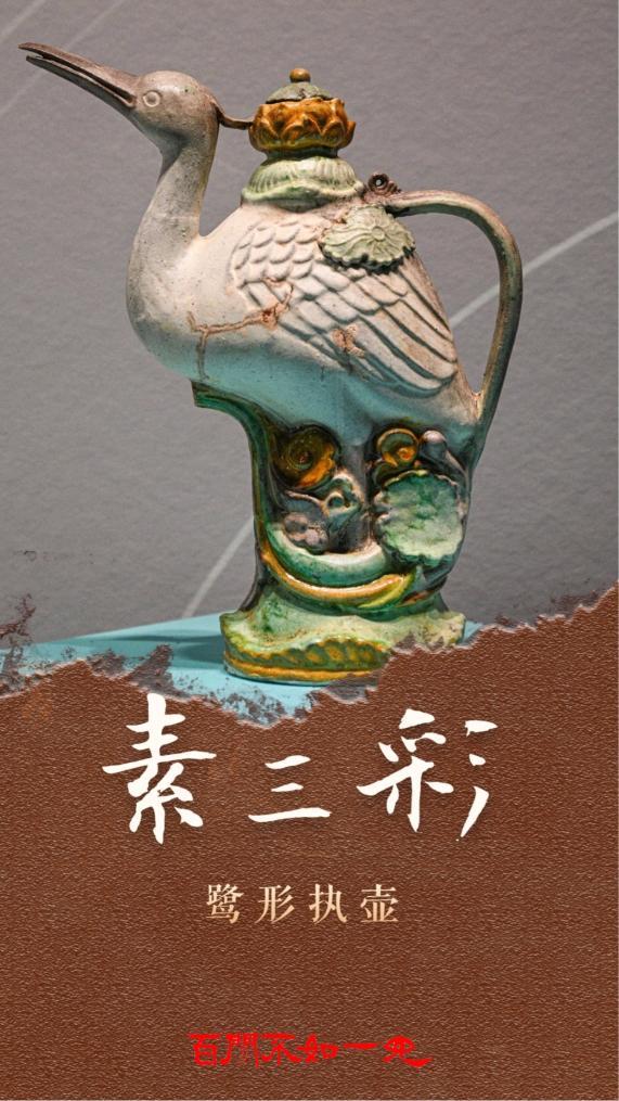 这只素三彩鹭形执壶