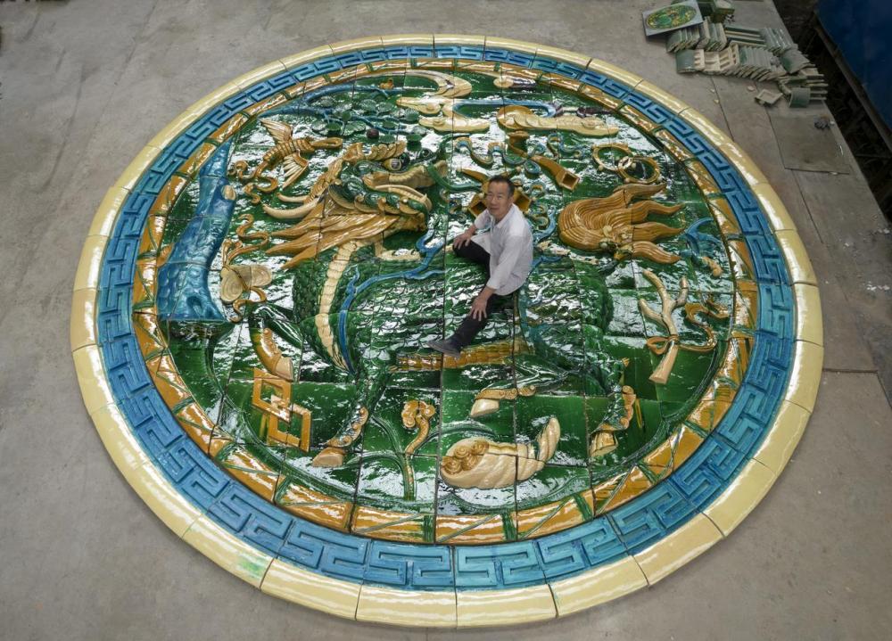 刘开宝复制的馆藏于大英博物馆收藏的龙纹琉璃砖。