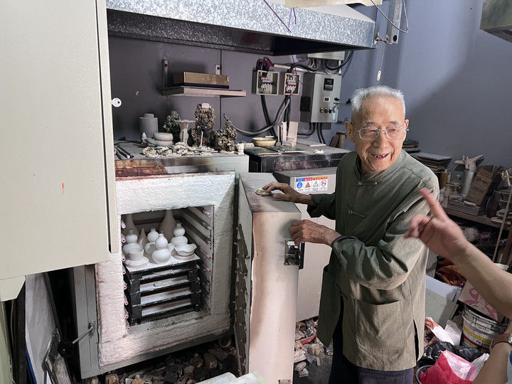 葛原生正在工作室烧制琉璃作品。