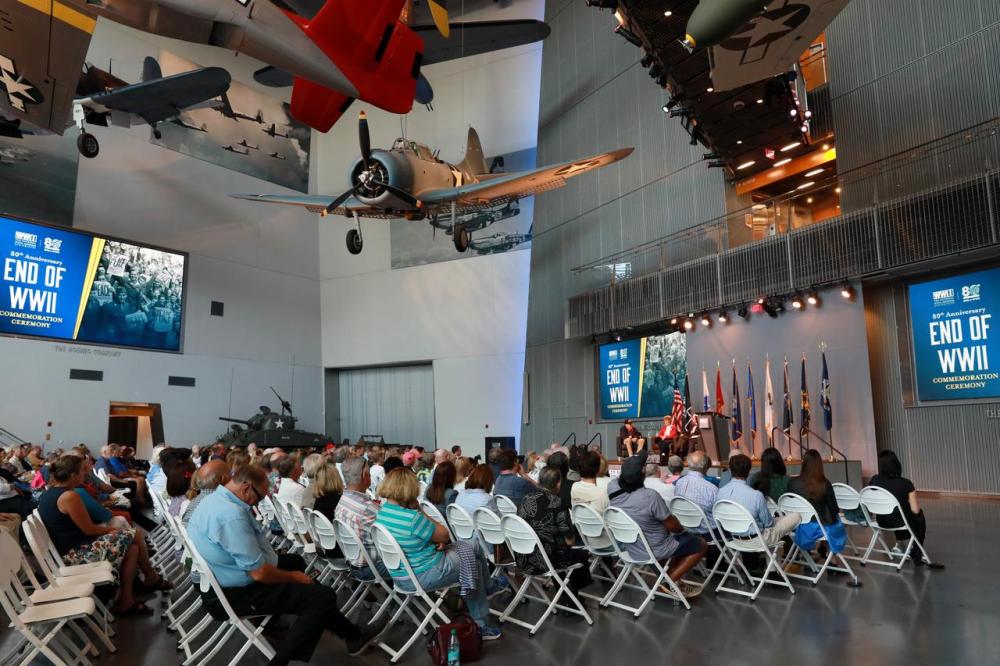 8月14日,在美国路易斯安那州新奥尔良市国家二战博物馆举行的二战结束80周年纪念仪式现场。 魏兰摄