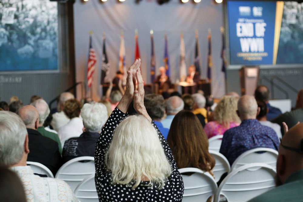 8月14日,在美国路易斯安那州新奥尔良市国家二战博物馆举行的二战结束80周年纪念仪式现场。魏兰摄