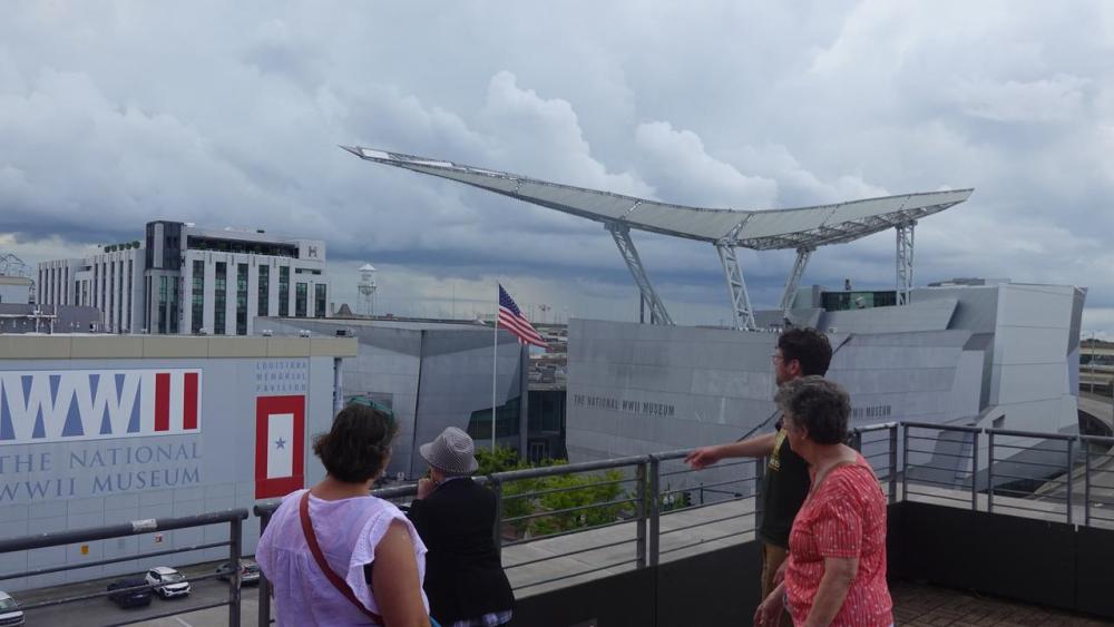 8月11日,游客远眺位于美国路易斯安那州新奥尔良市中心的美国国家二战博物馆。徐剑梅摄