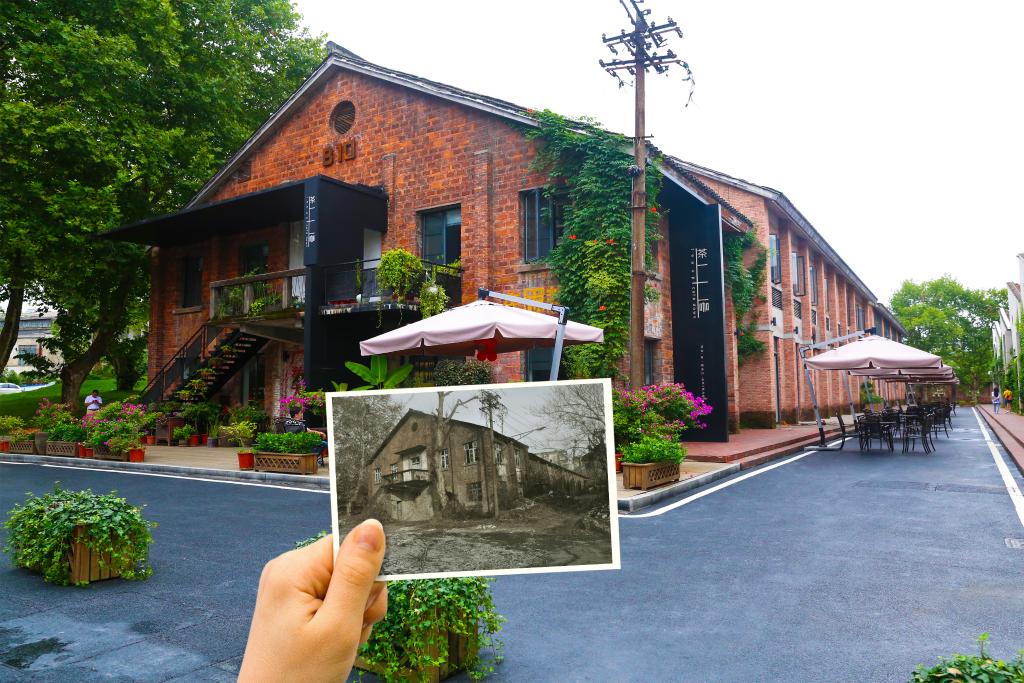 不拆一栋老厂房,不覆盖墙上的旧标语,就连十五六根早已不冒烟的烟囱,也坚持保留,市里也支持了他的想法。如今走在陶溪川的街上环顾四周,可以看到从20世纪20年代到90年代不同风格的建筑。