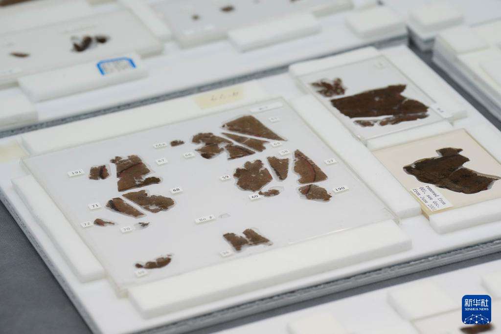 这是9月11日在湖南省博物馆拍摄的部分长沙子弹库战国帛书。新华社记者 薛宇舸 摄
