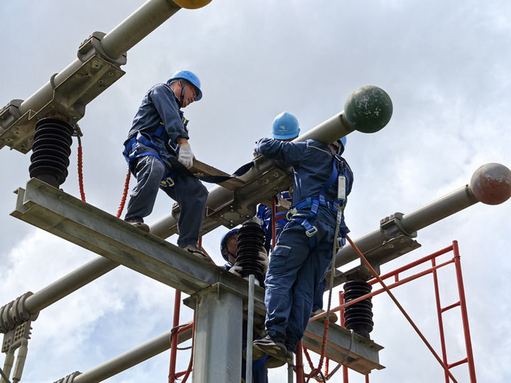 工作人员抢修电力。新华网发(陈文裕 摄)