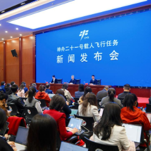 10月30日,神舟二十一号载人飞行任务新闻发布会在酒泉卫星发射中心举行。 新华社记者 马金瑞 摄