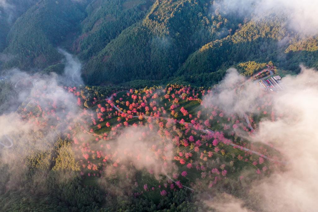 位于云南省西部的南涧彝族自治县无量山樱花谷的樱花竞相绽放,色彩缤纷,争奇斗艳,成为冬日里的一道亮丽风景。 新华社发(适志宏 摄)