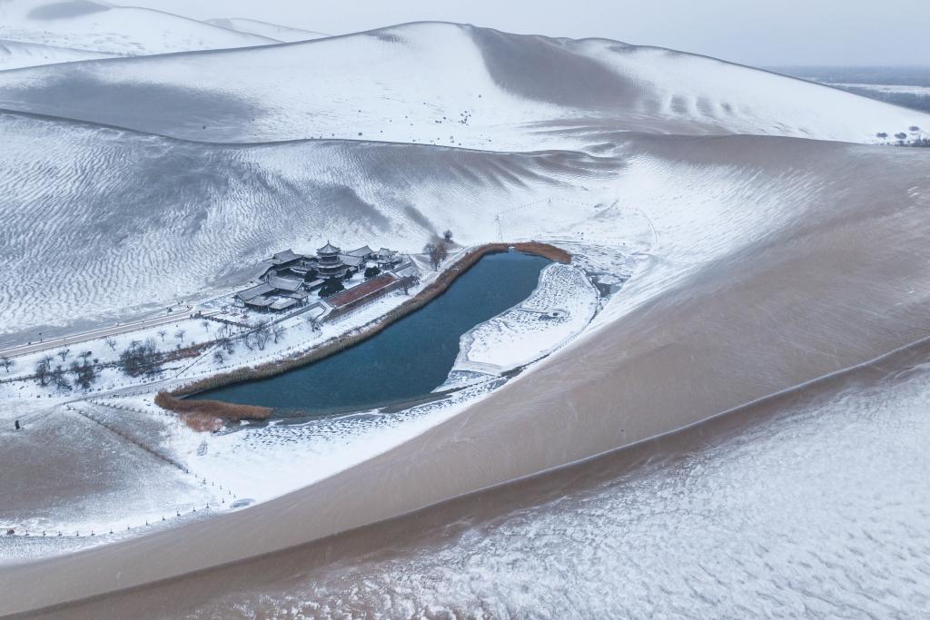 这是甘肃省敦煌市鸣沙山月牙泉景区雪景。新华社记者 郎兵兵 摄