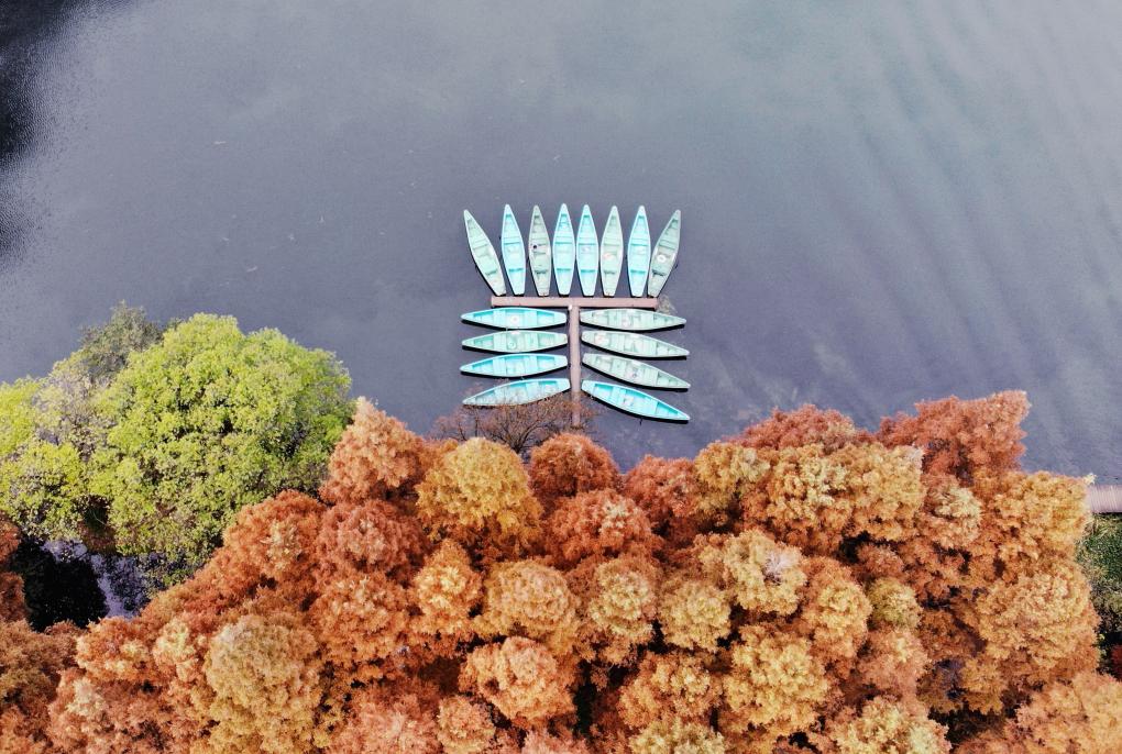 冬日时节,江苏省盱眙县天泉湖“水上森林”色彩斑斓,美如画卷。 新华社发(汤德宏 摄)