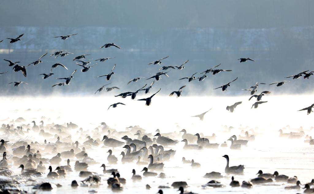 冬季,在辽宁省沈阳市浑河上,万余只鸿雁、赤麻鸭、鸳鸯等候鸟迁徙来此栖息。它们成群结队在河面上嬉戏、休憩,成为冬日里一道美丽的风景线。新华社记者 姚剑锋 摄