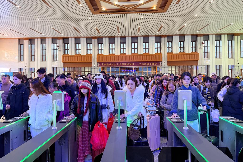 11月20日,旅客在云南香格里拉站通过检票口乘车。
