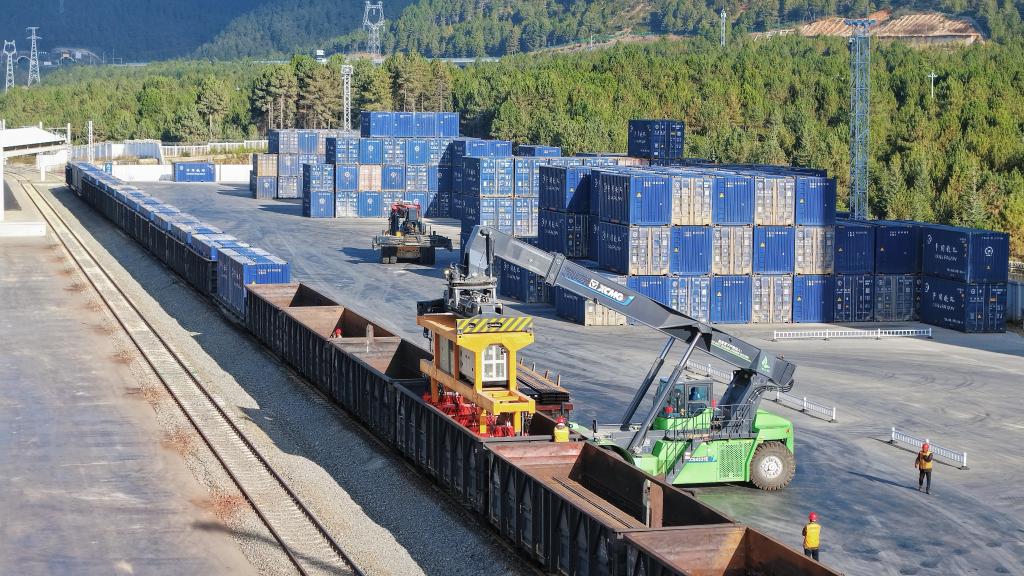 这是11月21日拍摄的云南迪庆藏族自治州小中甸站货场(无人机照片)。