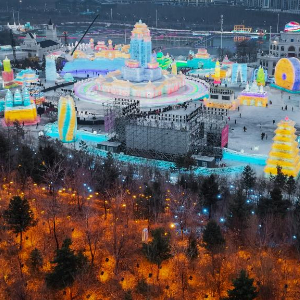 第七届长春冰雪新天地于当晚正式开园迎客。吉林省建设集团相关负责人介绍,本届园区以“冰雪福耀中华·民族大团结”为主题,在占地156万平方米的园区内,除巧夺天工的巨型冰雪雕塑群外,还打造了76万平方米的冰雪游乐空间,配套建设60余条风格各异的冰雪滑梯及30多种趣味游乐设施,为游客提供丰富多元的冰雪娱乐体验。