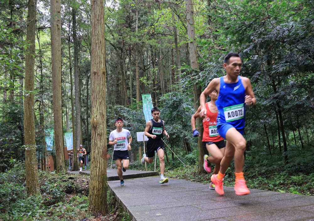 ↑9月27日,登山爱好者参加湖南张家界国家森林公园举办的首届鹞子寨登山赛。