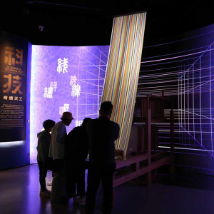 在“发现·五星锦”沉浸交互剧场,车队与驼铃声在月色下交织,五彩丝线串联起跨越时空的技艺与文明;而在“数字织机”前,观众通过操作屏幕上的拉杆与梭子,亲手将“虚拟丝线”织成绚丽的“数字五星锦”……