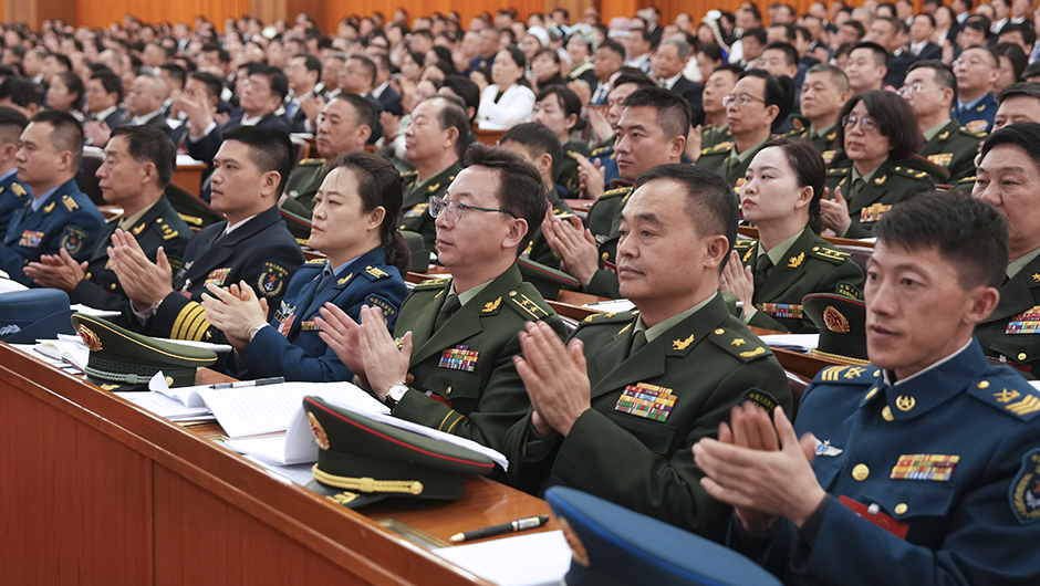 受全国人大常委会委托,赵乐际委员长向大会报告全国人大常委会工作