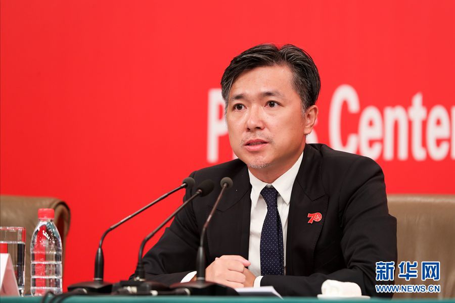 9月25日,庆祝中华人民共和国成立70周年活动新闻中心在北京梅地亚中心二层新闻发布厅举办第二场专题集体采访活动。图为群众游行总导演、北京师范大学艺术与传媒学院副院长肖向荣介绍相关情况。新华网记者 焦鹏 摄