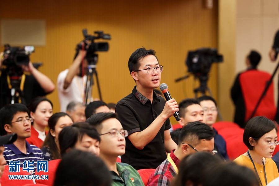 9月25日,庆祝中华人民共和国成立70周年活动新闻中心在北京梅地亚中心二层新闻发布厅举办第二场专题集体采访活动。图为媒体记者提问。新华网记者 焦鹏 摄