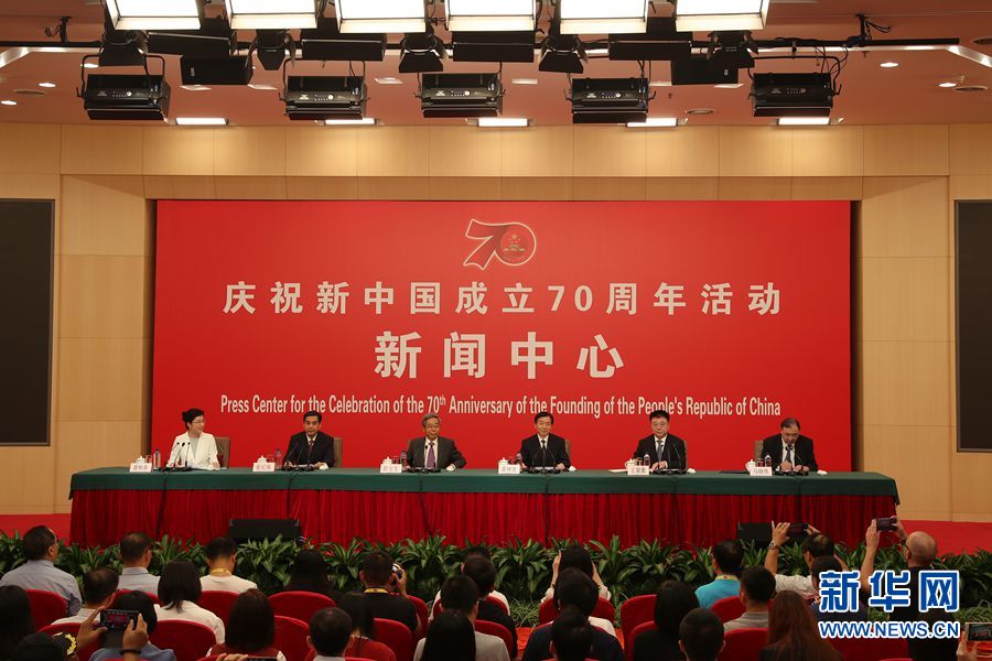 9月26日,庆祝中华人民共和国成立70周年活动新闻中心在北京梅地亚中心二层新闻发布厅举办第二场新闻发布会。图为新闻发布会现场。新华网记者 郭小天 摄