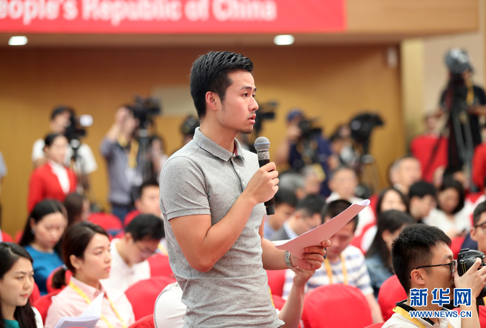 9月27日,庆祝中华人民共和国成立70周年活动新闻中心在梅地亚中心二层新闻发布厅举办第三场新闻发布会,中央农村工作领导小组办公室主任、农业农村部部长韩长赋,国务院扶贫开发领导小组办公室主任刘永富介绍全面建成小康社会,扎实推进脱贫攻坚和乡村振兴,并回答记者提问。图为现场记者提问。新华网 陈杰 摄