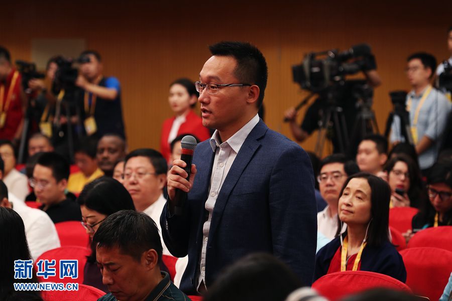 9月29日,庆祝中华人民共和国成立70周年活动新闻中心在北京梅地亚中心二层新闻发布厅举办第四场新闻发布会。图为媒体记者提问。新华网记者 焦鹏 摄